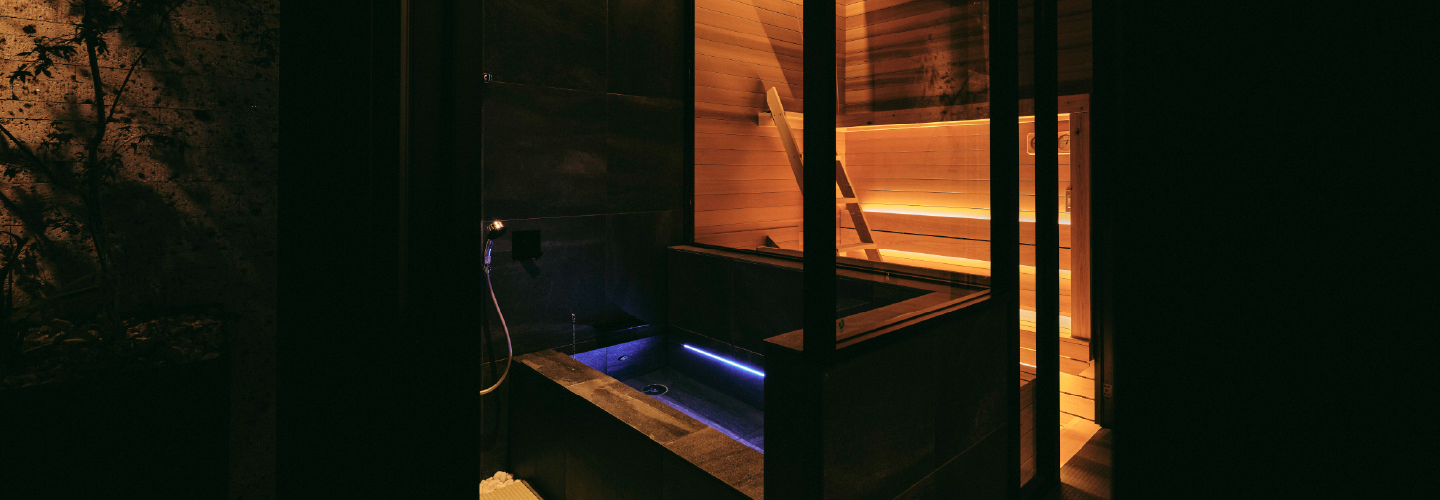 サウナとに水風呂が融合した空間「温冷交互」と、茶室のようなサウナ「和の静寂」の2つのをご用意。
